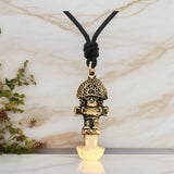 The pendant features a detailed replica of a Peruvian knife, symbolizing strength, protection, and the rich history of ancient civilizations. The brass offers a rustic, vintage appeal, ideal for those who favor a more earthy and authentic aesthetic.