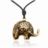 Aztec Elephant Handmade Gold Brass Necklace Pendant Jewelry