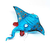 ZOOCRAFT Glass Stingray Figurine Blue Hand Blown Art Sealife Ornament Collectible Miniature Aquarium Coastal Decor, 3.0 x 3.1 x 1.3 inches