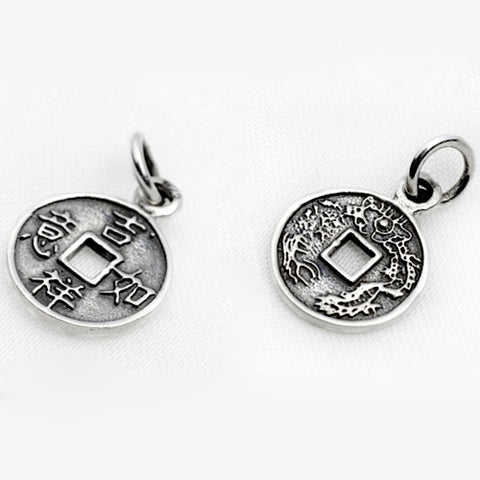 I Ching Coin Fen Shui Sterling Silver Gold Brass Necklace Pendant Jewelry