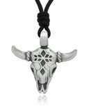 Tribal Bull Skull Silver Pewter Charm Necklace Pendant Jewelry