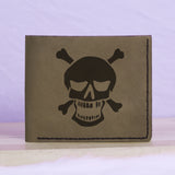 Men's Rock Style Skull Genuine Leather Blocking Bifold Wallet MHLT_01_GRN