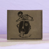 - This leather wallet is hand-cut and hand-stitched from natural leather without use of any machine which gives it a very simple but unique look. This one is suitable for all kinds of occasions. Especially, the wallet is burned pattern onto the surface that makes the wallet look more unique. To this kind of leather type, the scratch makes item look retro style, and it is easy to deal with, if you don't like the scratch on surface. This wallet will be the best choice when you need more than just a simple card wallet. This is a simple, clean, traditional design wallet including six card slots, one bill pocket with full size, and ID window, made with high quality durable leather to meet your daily needs.