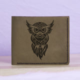 Men's Unique Owls Handmade Genuine Leather Blocking Bifold Wallet MHLT_01_GRN