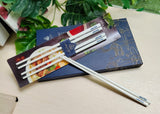 Minh Long Set 2 Pairs Porcelain Ceramic Chopsticks Paper Box