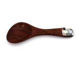 Myanmar Handmade Natural Wooden Dessert Spoon With Mother of Pearl Inlay Handle