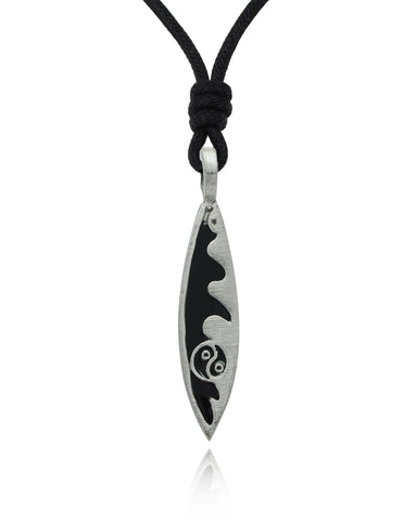Yin Yang Surfboard Silver Pewter Charm Necklace Pendant Jewelry
