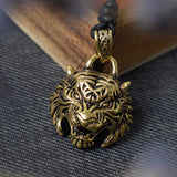 Tiger Head Wild Animal 925 Sterling Silver Gold Brass Necklace Pendant Jewelry