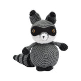 What a great crocheted stuffed raccoon for decorating your room and for baby as well. It's in gray, white and black yarn. Made from non-allergenic material so it is safe for babies.